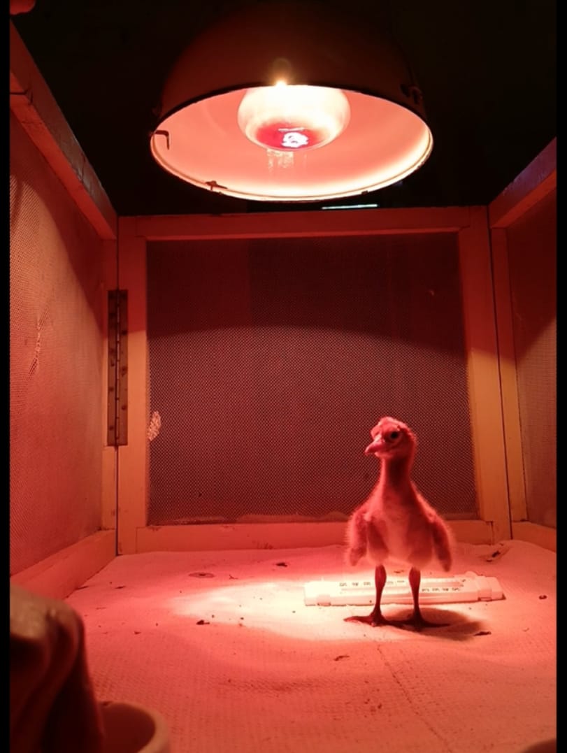 После вылупления в стационарном инкубаторе новые обитатели переехали в специально оборудованный птенцовый комплекс. Персональные апартаменты каждого включают отдельную комнату со всеми удобствами (обогрев инфракрасной лампой, свежее постельное бельё - пелёнки, свежую воду, шестиразовое питание) и уличный выгул с видом на сосновый бор. Малыши обживают манежи с макетами птиц-мам и находятся на ручном выкармливании. Их воспитанием и обучением занимаются сотрудники и волонтеры Питомника.