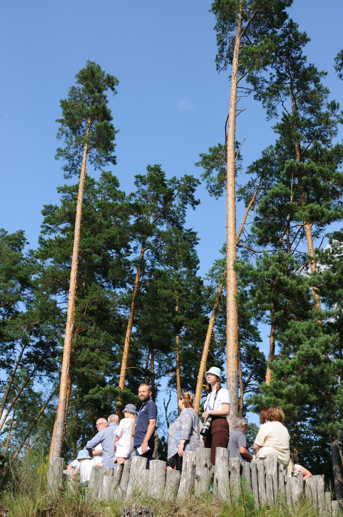 После конференции для гостей заповедника провели ознакомительную экскурсию по Центральной усадьбе заповедника с посещением эстакады на реке Пре, развалин стекольного завода, Питомника редких видов журавлей и Питомника чистокровных кавказско-беловежских зубров.