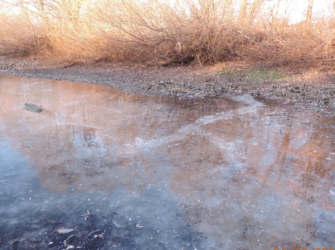 Бобровая траншея. В боковых стенах видны выходы нор выхухоли