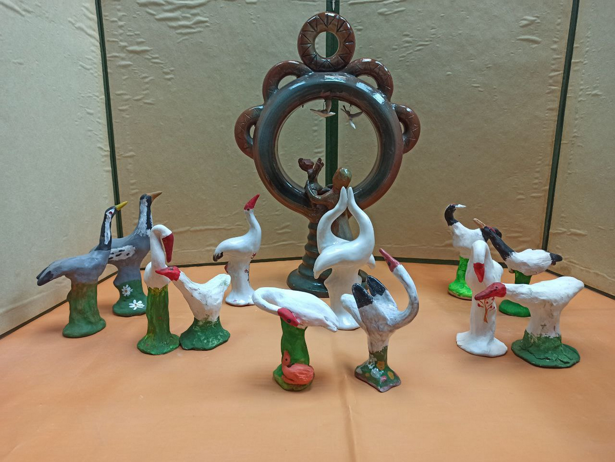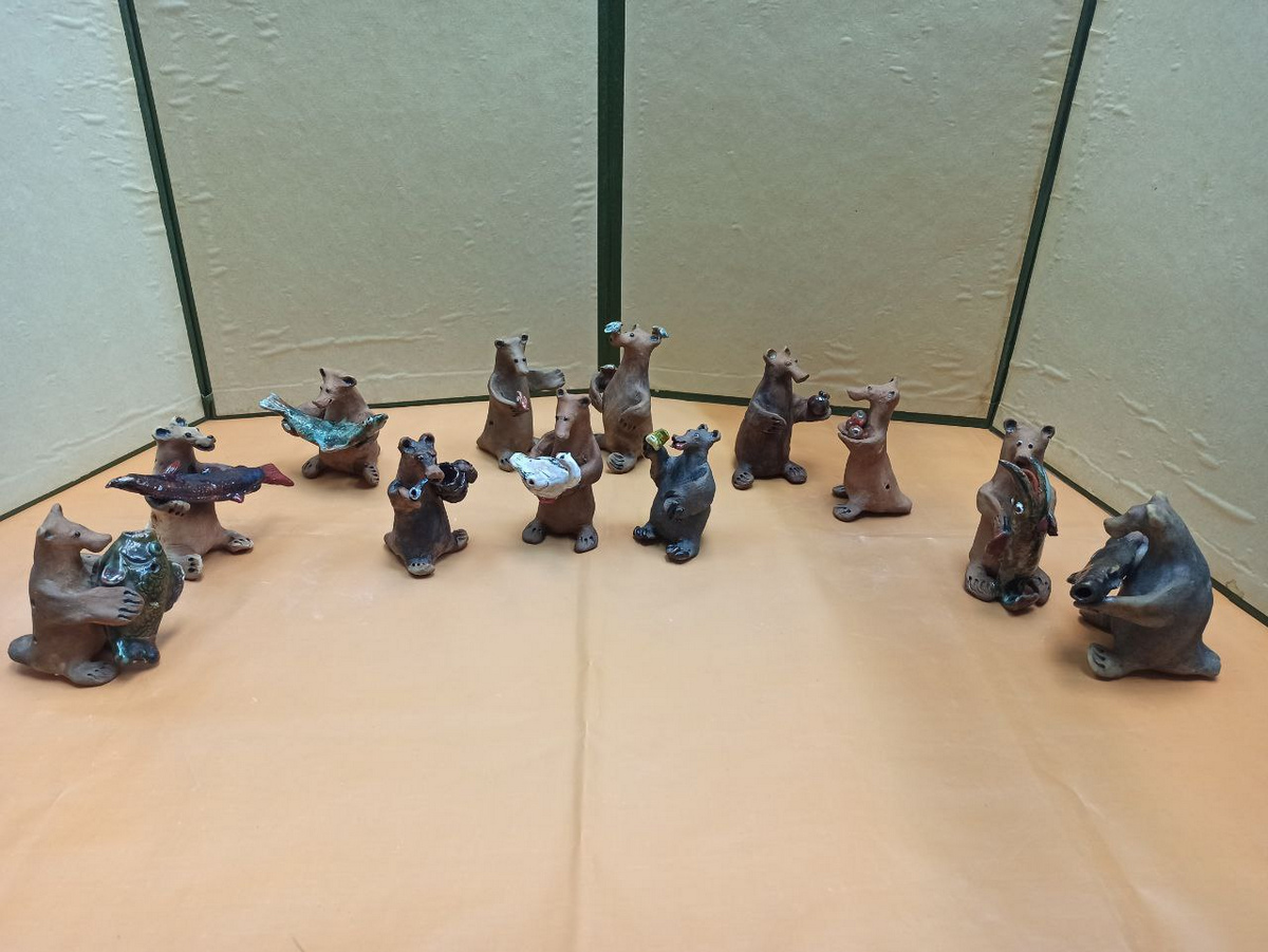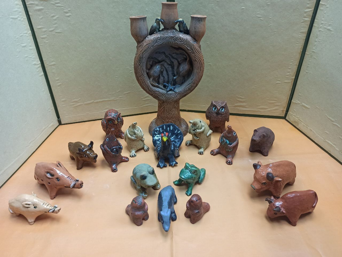 Дополняют выставку глиняные игрушки студии «Глинка», которой руководит Ольга Шириня. Дети мастерски вылепили богатый мир фауны Окского заповедника – птиц и зверей. Это такие игрушки, как «Выхухоль», «Кабан», «Зубр», «Бобрик», «Журавль» и другие. И все это свистит на разные голоса, разговаривает по-птичьи. Игрушки самой мастерицы уникальны, они сочетают мастерство керамиста и зоологические знания автора. Поэтому многие животные у нее получаются очень натуральными, не просто узнаваемыми, а биологически достоверными.