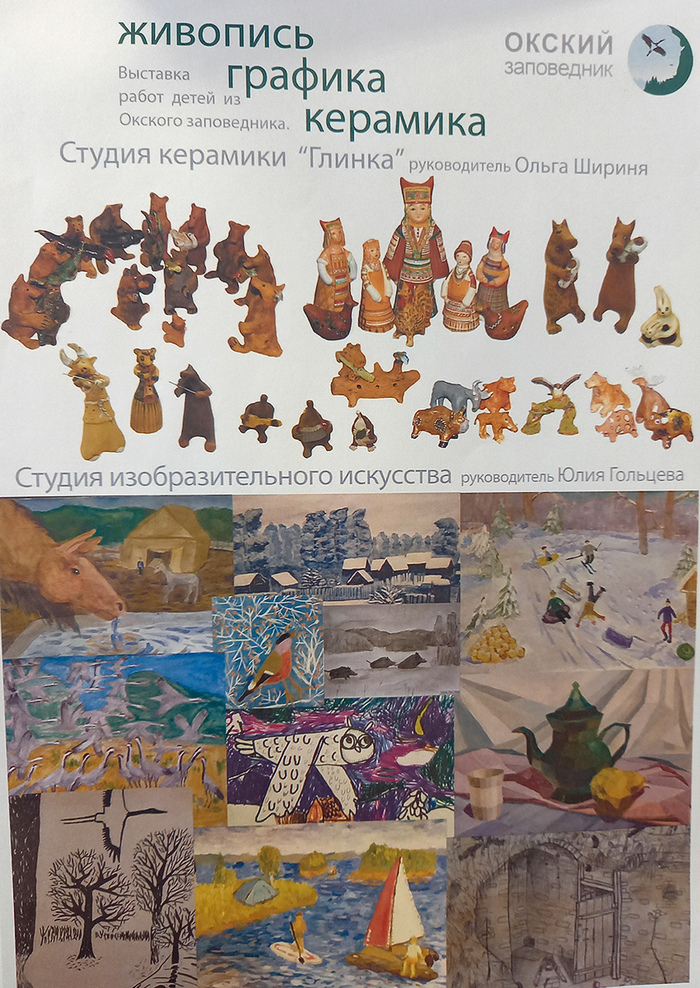 В центральной библиотеке им. А. Н. Левашова г. Спасск-Рязанский открылась выставка детских работ брыкинборской студии керамики «Глинка» (руководитель Ольга Алексеевна Шириня) и студии изобразительного искусства (руководитель Юлия Александровна Гольцева).